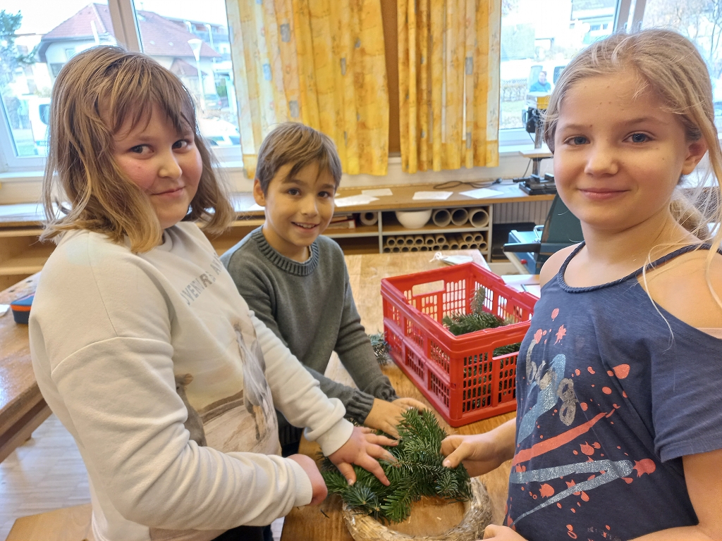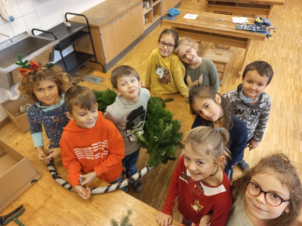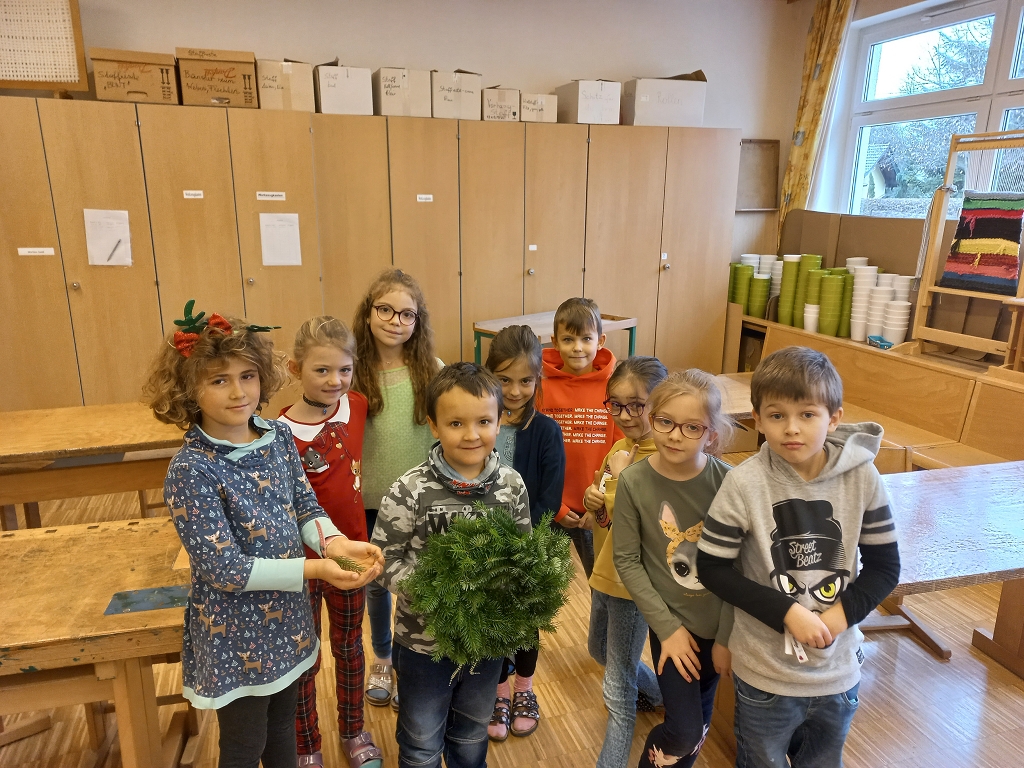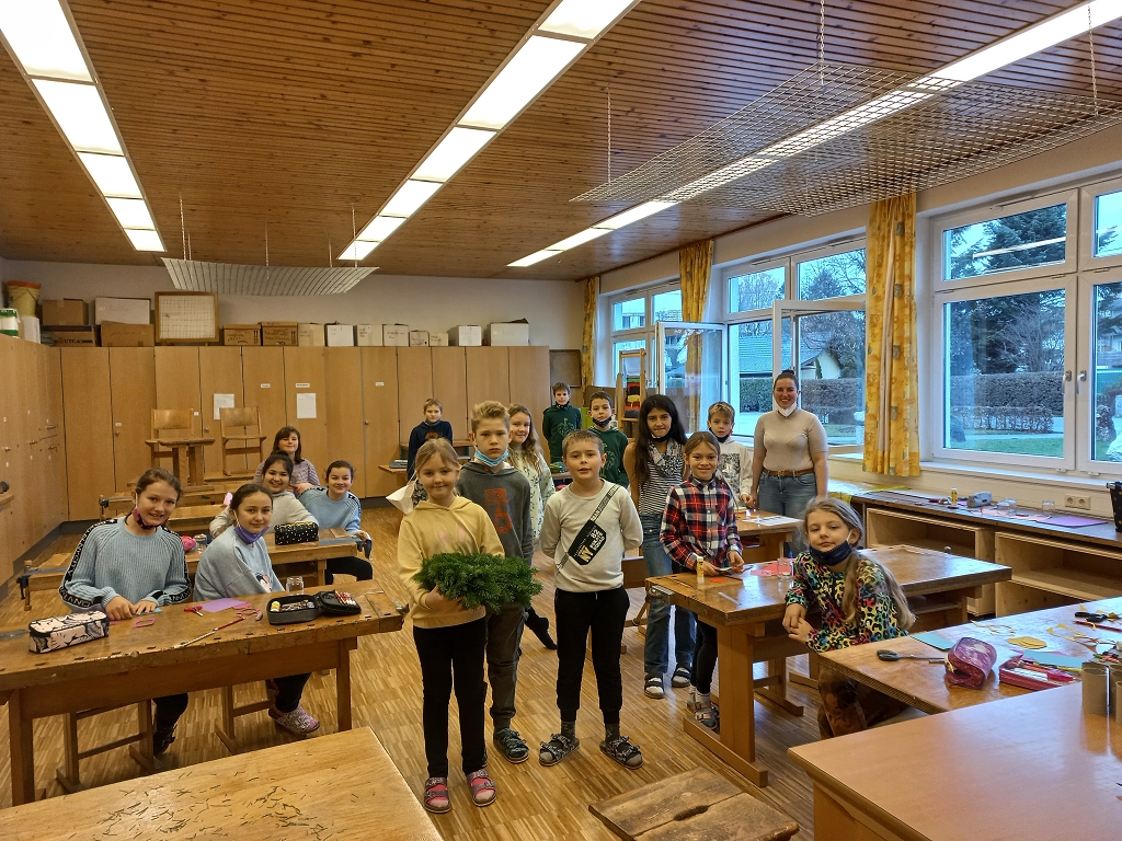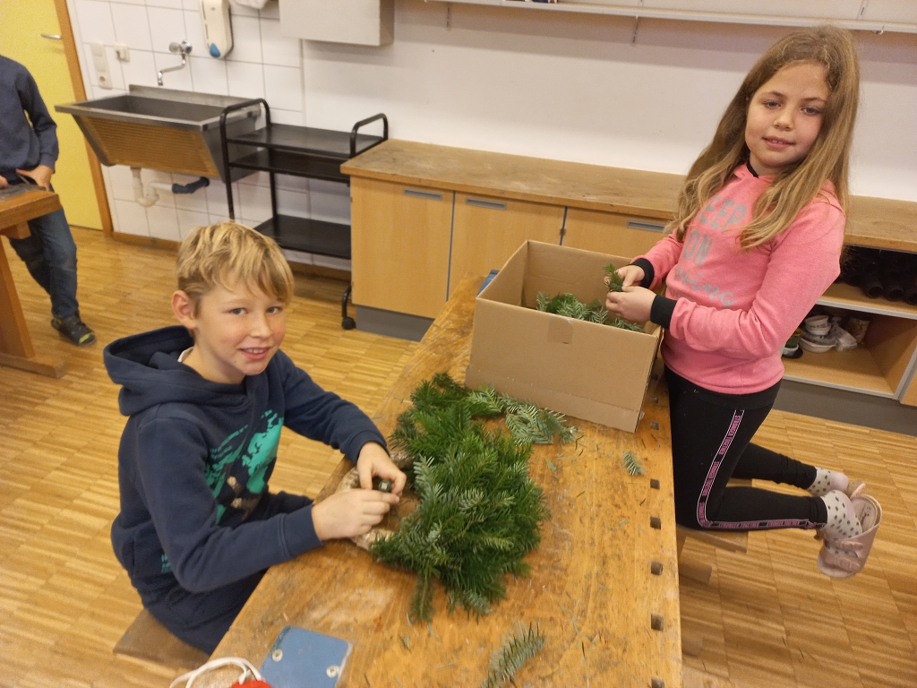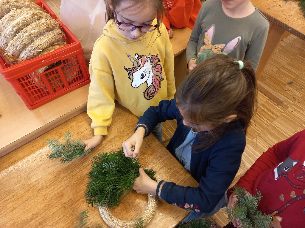 7. Dezember 2021Das jährliche Adventkranzbinden und -segnen ist an der VS Vorchdorf schon Tradition. Gemeinsam mit den Religionslehrerinnen, vorrangig mit Frau Ingrid Veress binden die Kinder wunderbare grüne Kränze. Ein großer Kranz, geschmückt mit vier Kerzen und Bändern bereichert das Stiegenhaus der Volksschule. Kleine grüne Kränze wurden zu Klassen-Adventkränzen umgestaltet. Gesegnet wurden die geschmückten Kränze heuer dann allesamt in der Schule.