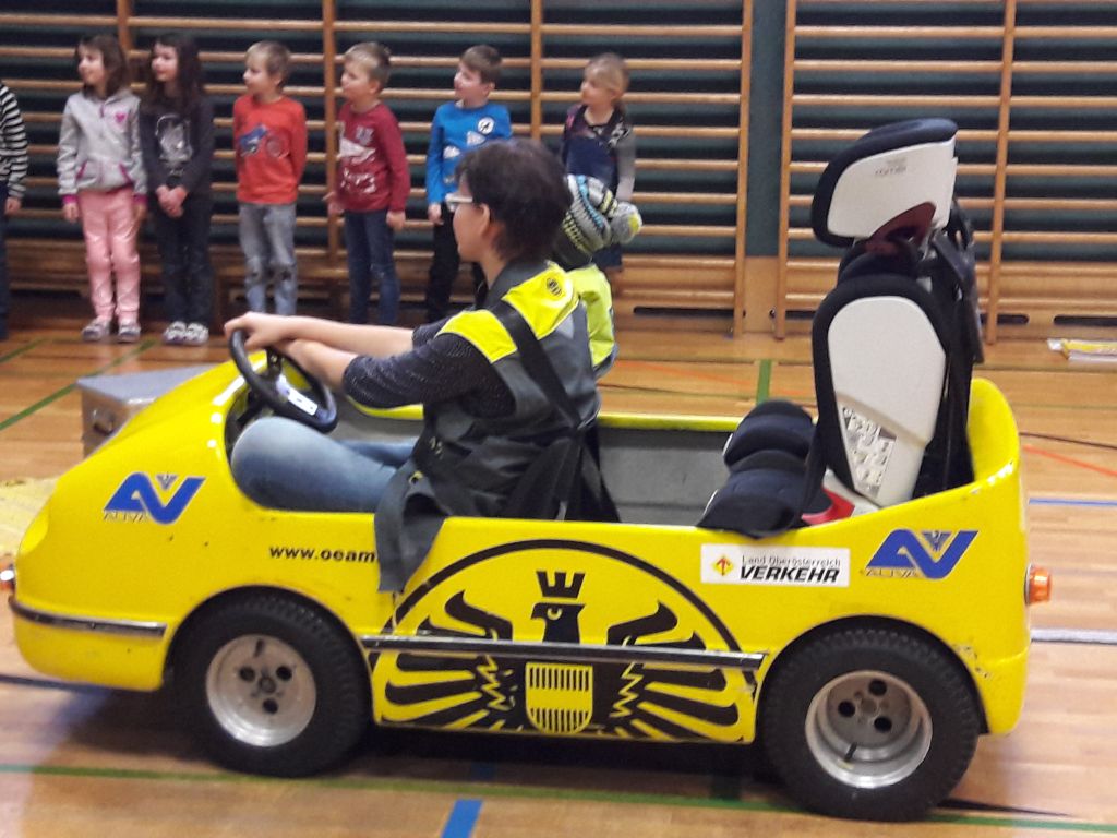 In einem einstündigen Programm lernen die Schülerinnen und Schüler in einem realistisch dargestellten Programm spielerisch die richtigen Verhaltensweisen im Straßenverkehr. Zur Umsetzung der Begriffe Sichtlinie und Blickkontakt werden aufblasbare Autos verwendet. Die Benützung der richtigen Rückhaltevorrichtung wird mit einem eigens dafür konstruierten Elektroauto, in dem die Kinder auch mitfahren können, demonstriert.