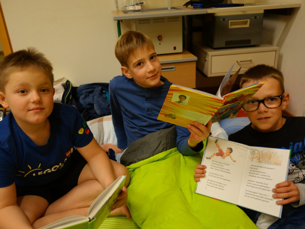 15. Dezember 2017Eine abwechslungsreiche Nacht in der Schule verbrachten die Schülerinnen und Schüler der 3A mit ihrer Klassenlehrerin Josefa Ketter. Durch die tolle Unterstützung vieler Muttis konnten spannende Angebote gesetzt werden. Es wurde gebacken, gebastelt und gelesen. Nach den Aktivitäten am Abend und dem guten Schlaf in der Nacht wurden alle am Morgen wieder von den Eltern abgeholt. Was für eine wunderbare Lesenacht!
