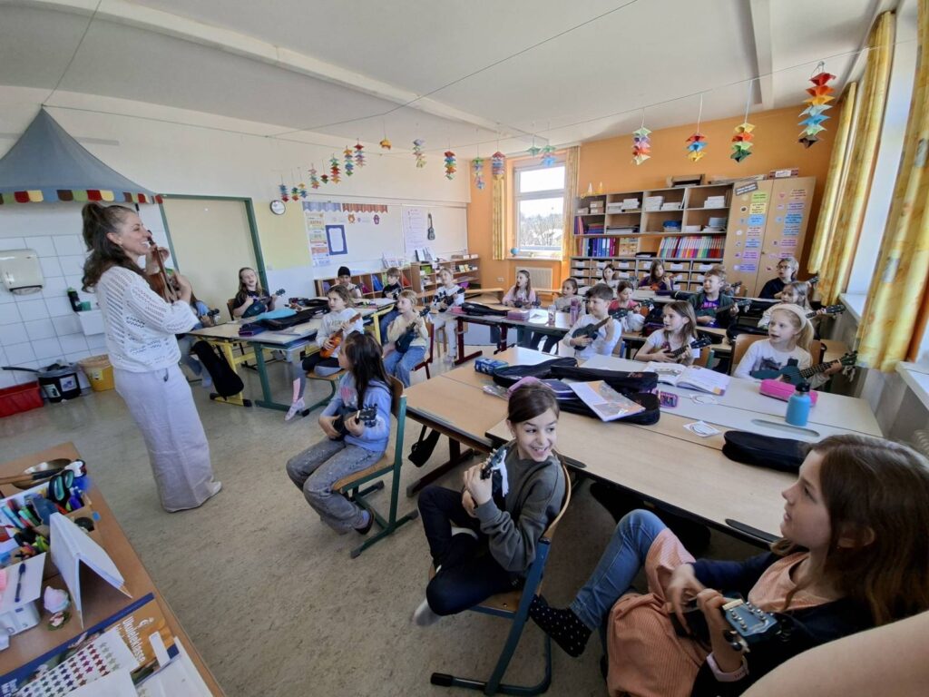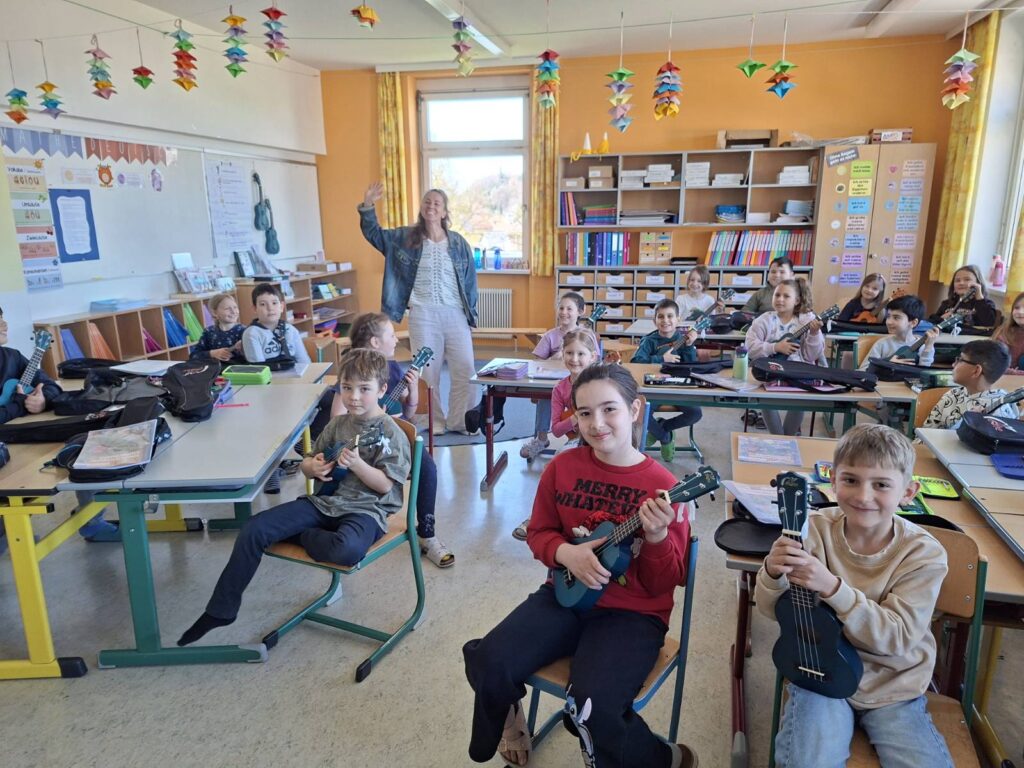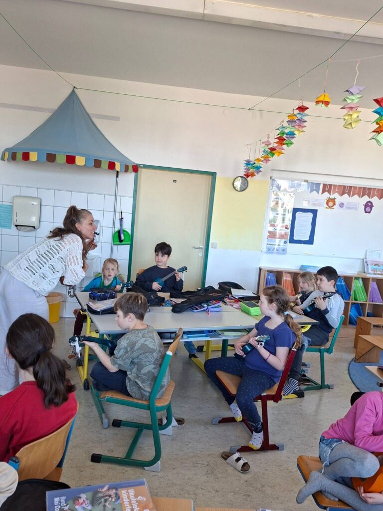 Mai Cocopelli beim Ukulelenunterricht 8. April 2026 Im Zuge des Ukulelenprojekts besuchte Mai Cocopelli die UkulelenschülerInnen der VS Vorchdorf und spielte mit ihnen. Die Aufregung war bei den Kindern groß und es hatten alle viel Freude und Spaß. Share