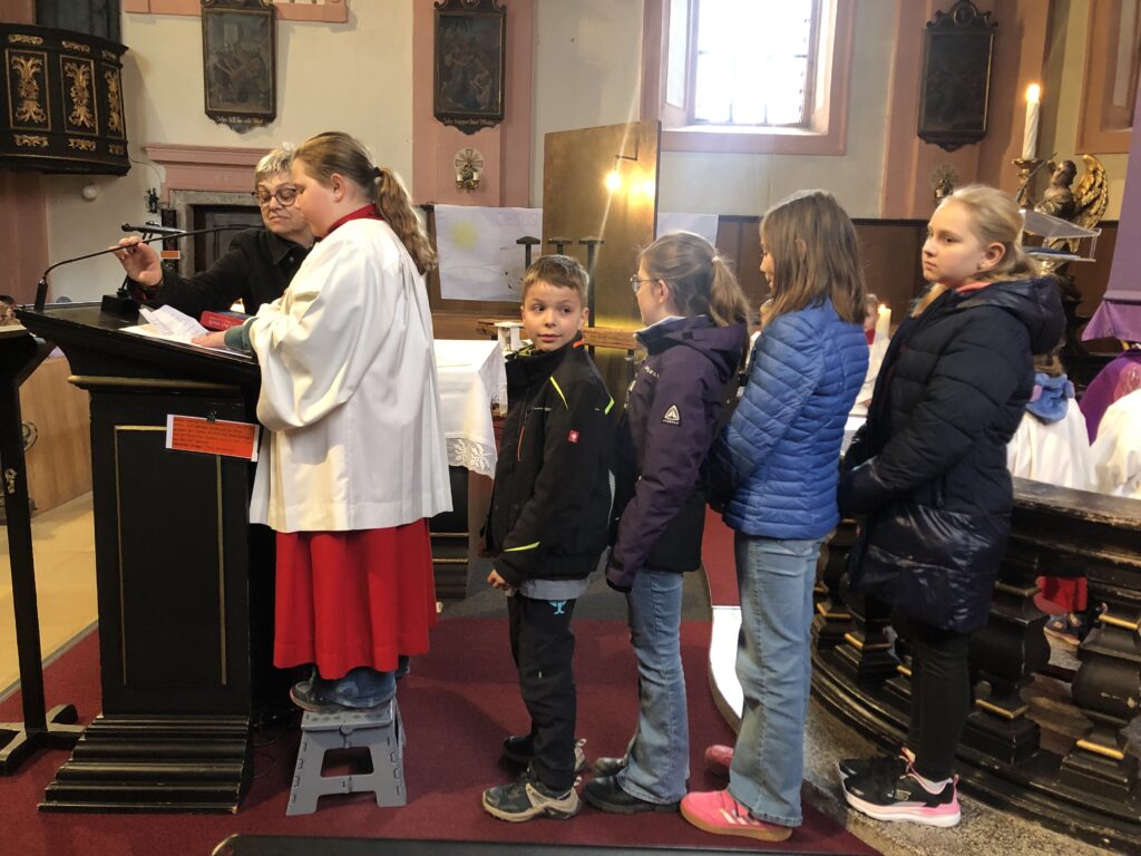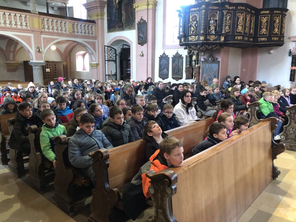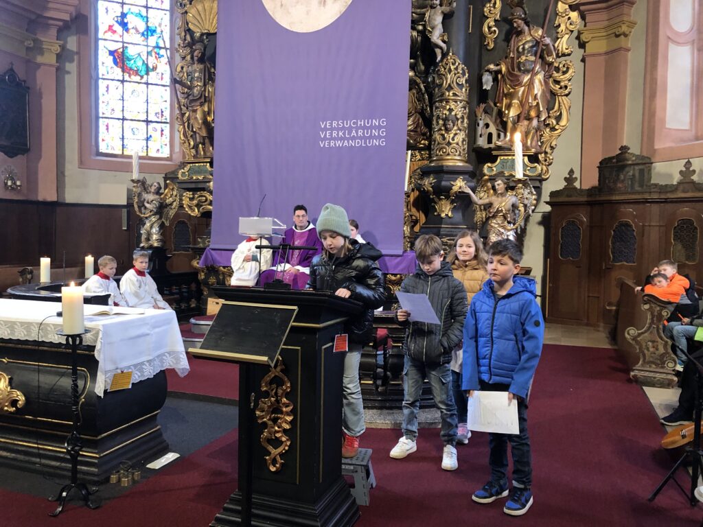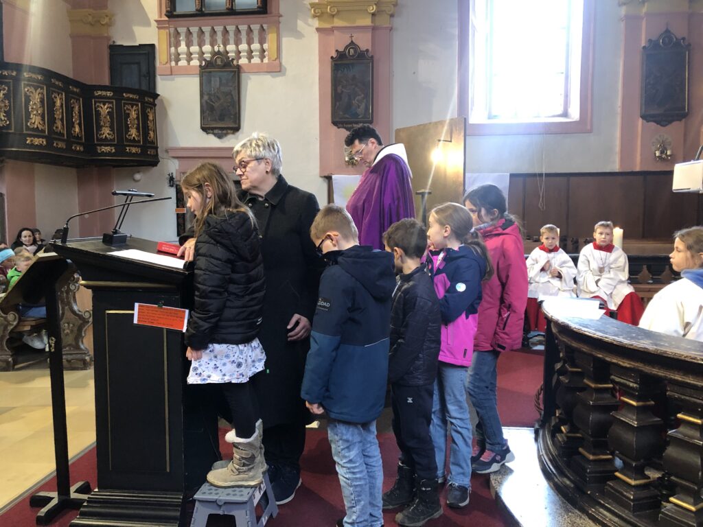 Der vorösterliche Gottesdienst am 26. März 2026 stand unter dem Thema: „Das Kreuz tragen helfen“. Die Lesetexte wurden von den Schüler:innen der 3. und 4. Klassen vorgetragen. Die Kinder sangen die schwungvollen Lieder begeistert mit.