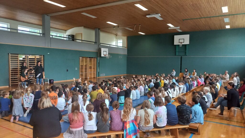 Dazu treffen sich die Klassen in der alten Turnhalle, um beispielsweise einen gemeinsamen Abschluss der Schulwoche zu erleben und anschließend ins Wochenende zu gehen.
