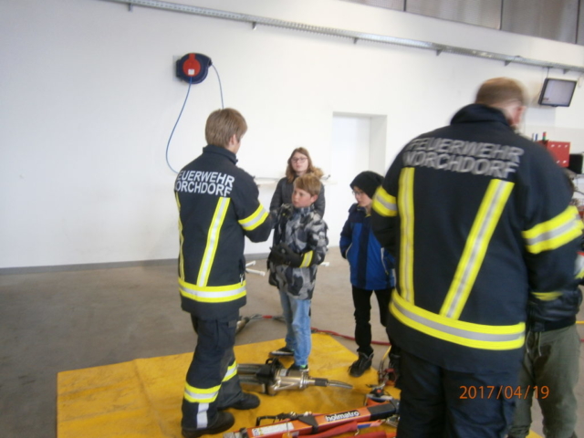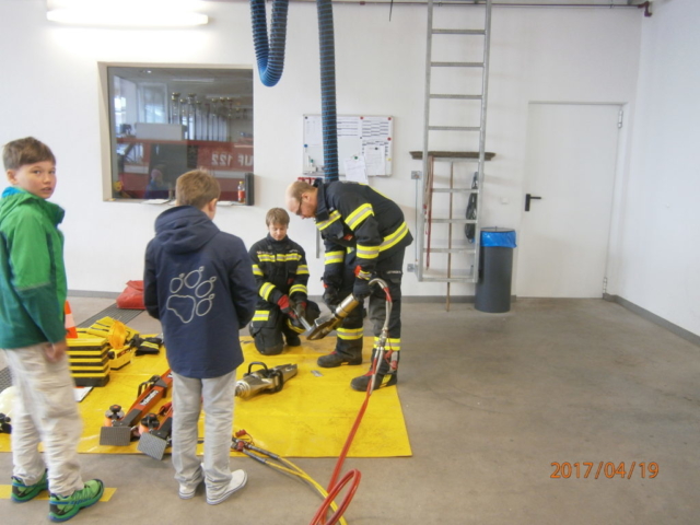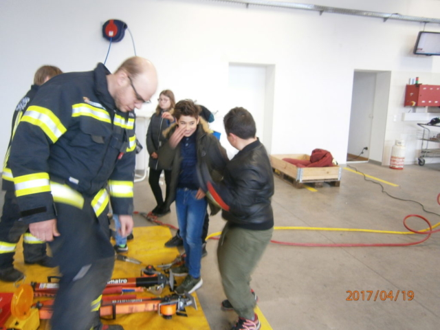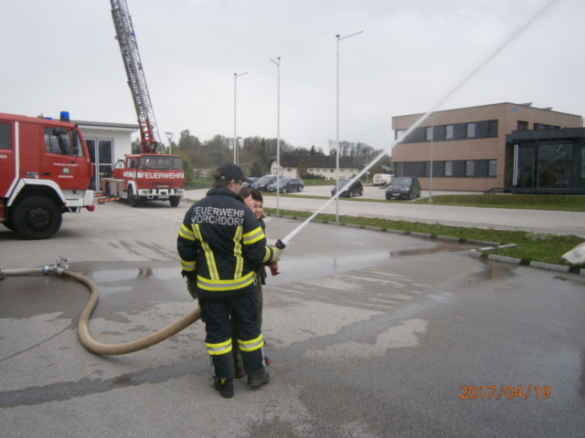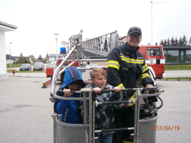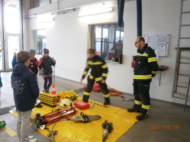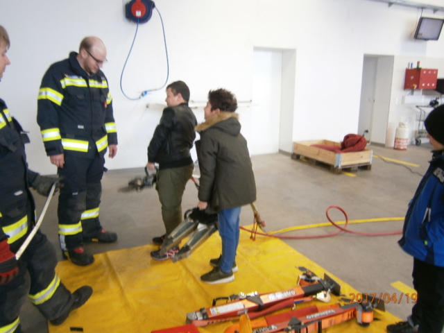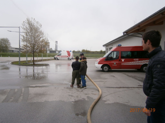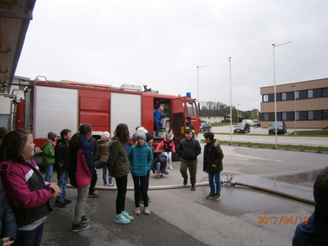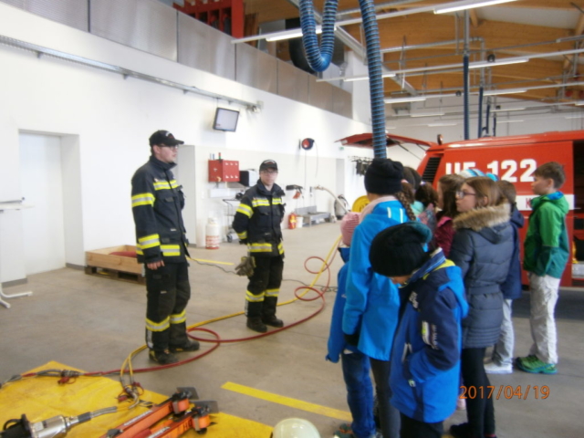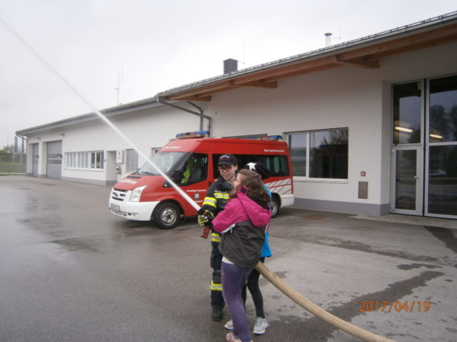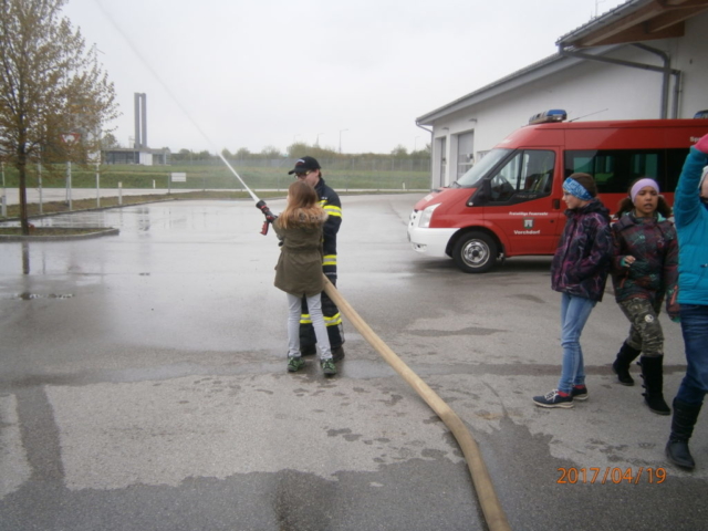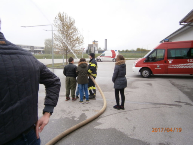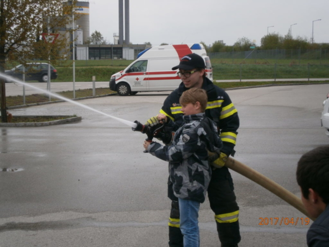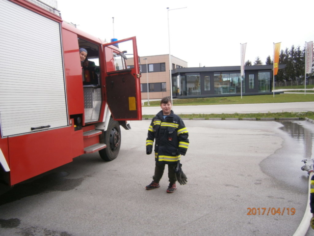 19. April 20174b: Gleich nach Ostern wurden wir mit dem Feuerwehrauto von der Schule abgeholt und durften die Feuerwehr in Vorchdorf kennen lernen. Zuvor gab es noch einen kurzen Videofilm über die vielfältigen Einsätze der FF Vorchdorf von 2016. Extrem schwer war die Bergschere, hoch hinaus ging es mit der Hebeleiter und obwohl es schneite und sehr kalt war, wollte jeder von uns natürlich auch löschen. Diese Chance konnte sich keiner entgehen lassen. Ein großer Dank der FF Vorchdorf für diese einmalige Gelegenheit!