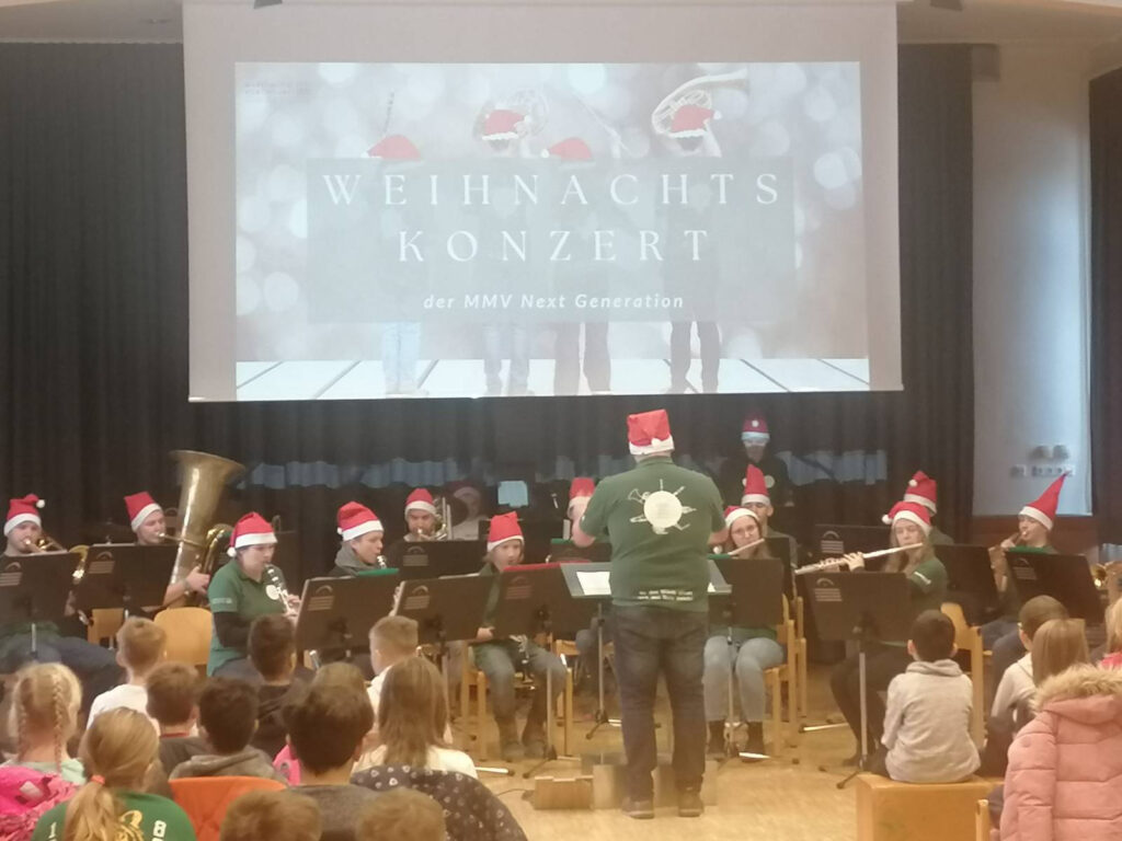 19. Dezember 2022Heuer durften sich die Kinder und Lehrerinnen wieder einmal von den Klängen der MMV Next Generation verzaubern lassen. Mit einer musikalischen Geschichte rund um die Tiere im Wald und ihren Instrumenten wurden wir auf Weihnachten eingestimmt.